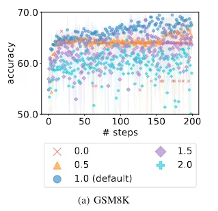 a model temperature of 1 (the default value for most models that have a temperature range of 0-2) results in the best performance — lower temperatures result in the model not exploring the solution space enough, and higher temperatures cause the model to ignore the trajectory of the example solutions